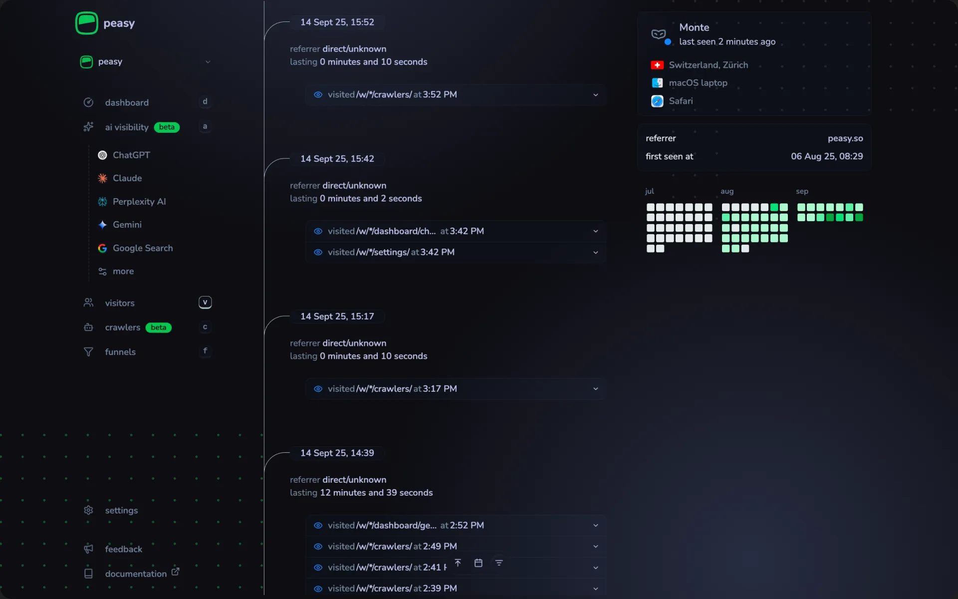 Add Peasy to your site in minutes and start seeing live traffic data in a clean dashboard built for speed and clarity.